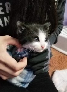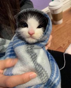 The woman took him to her home for adaptation. The kitten was named Xavier and the first thing they did was rid him of fleas.