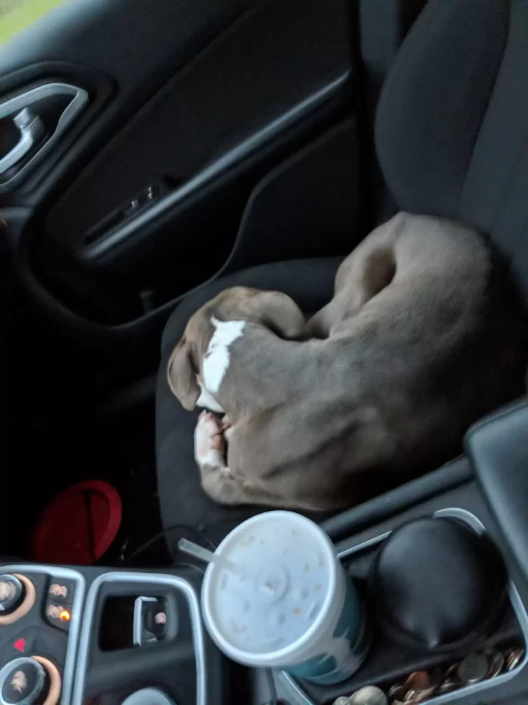 As he led her out of the apartment, the pit bull kept glancing back at the door, as if unsure she was really free. When they reached his car, Johnson opened the backseat and let her climb in.