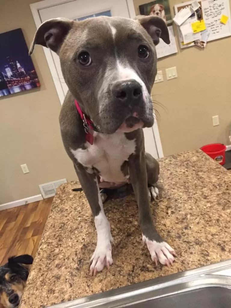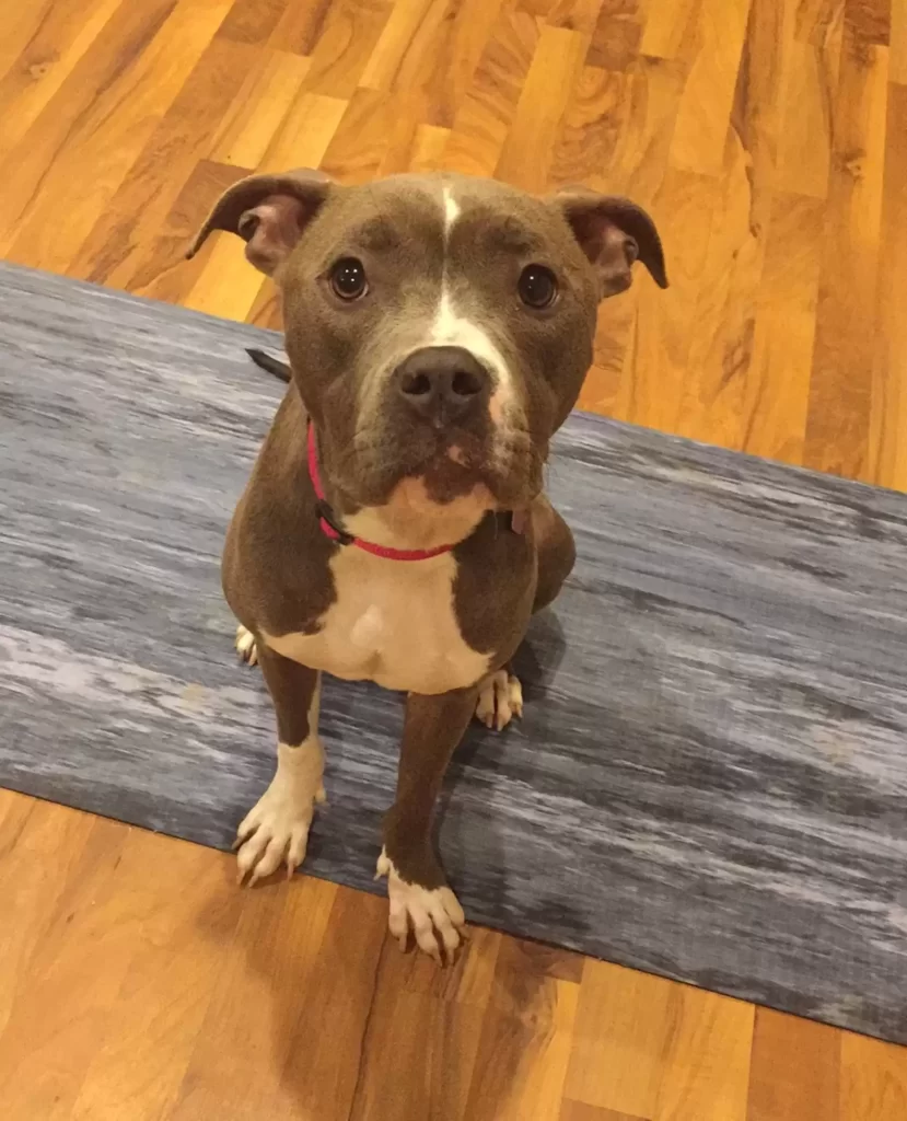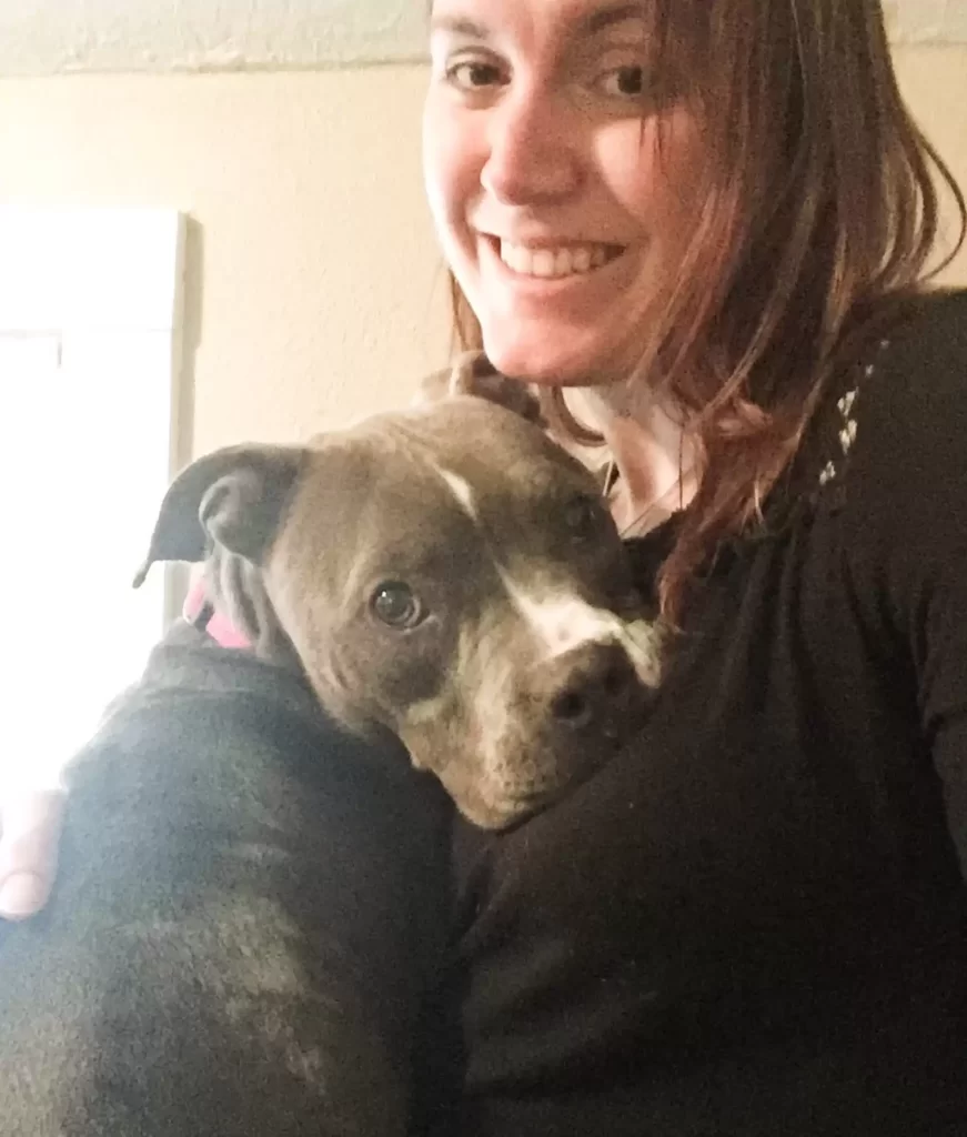 “Just a happy, goofy one-year-old pit bull who finally feels safe.”
