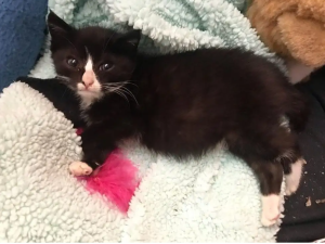 The roughly 6-week-old kitten had a multitude of health issues and needed attention 24 hours a day. If Caitlin hadn’t taken him to her, he would have been lucky to survive.