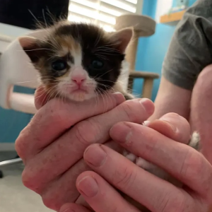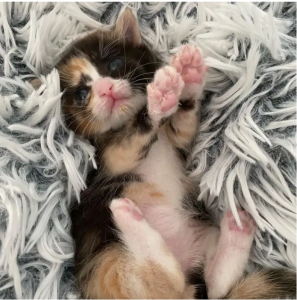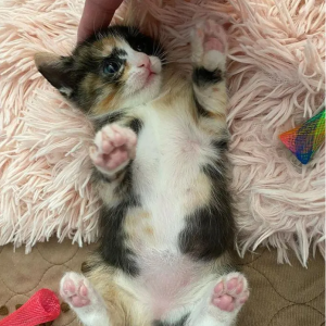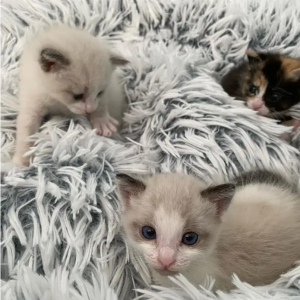 Mini Cat Town (San Jose, California) animal advocates received three stray kittens: a multicolored female and her two brothers.