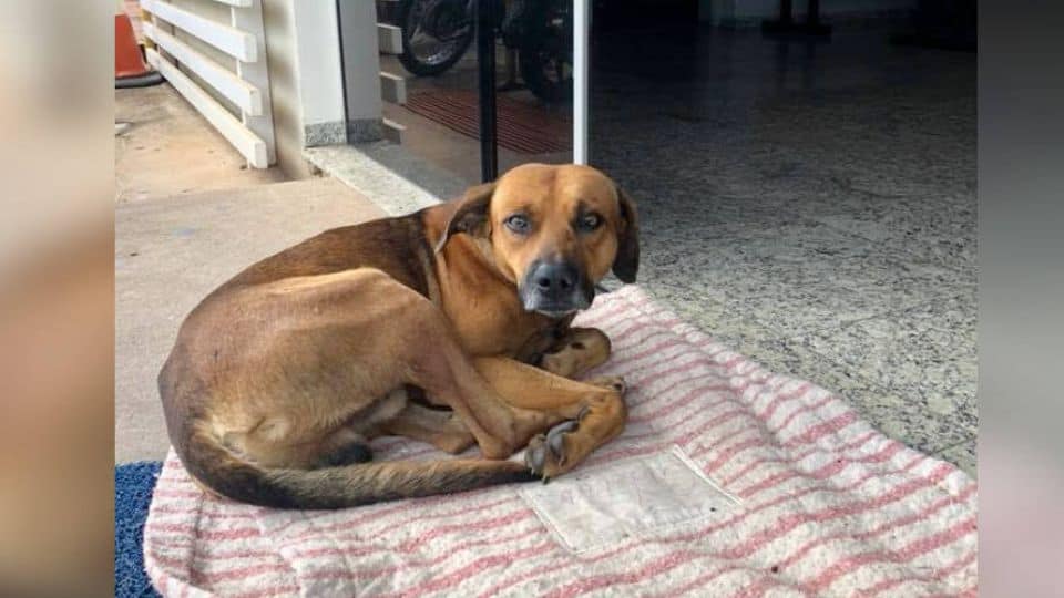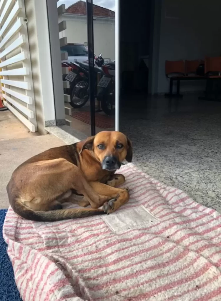 She stepped inside and asked the hospital staff why this pup had made the front entrance his home. The answer left her heart aching.