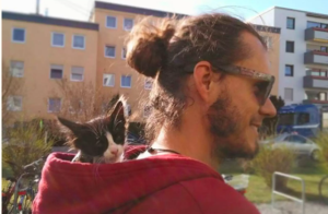 “When I got up, I was still full of doubt, but already in love with that little rugrat, so I decided to put her on the motorbike to see how she would cope,” Klauka explained. “‘It’s definitely not the right place for a cat,’ I thought, but it was either going to be that or almost certain death on the streets.”