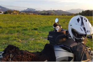 The little cat is now impressively well-traveled after backpacking through over a dozen countries with her dad, 32-year-old Martin Klauka of Rosenheim, Germany, mostly in the tank bag of his Honda XRV 750 Africa Twin bike. And there are still quite a few faraway places her dad intends on ticking off their joint bucket list
