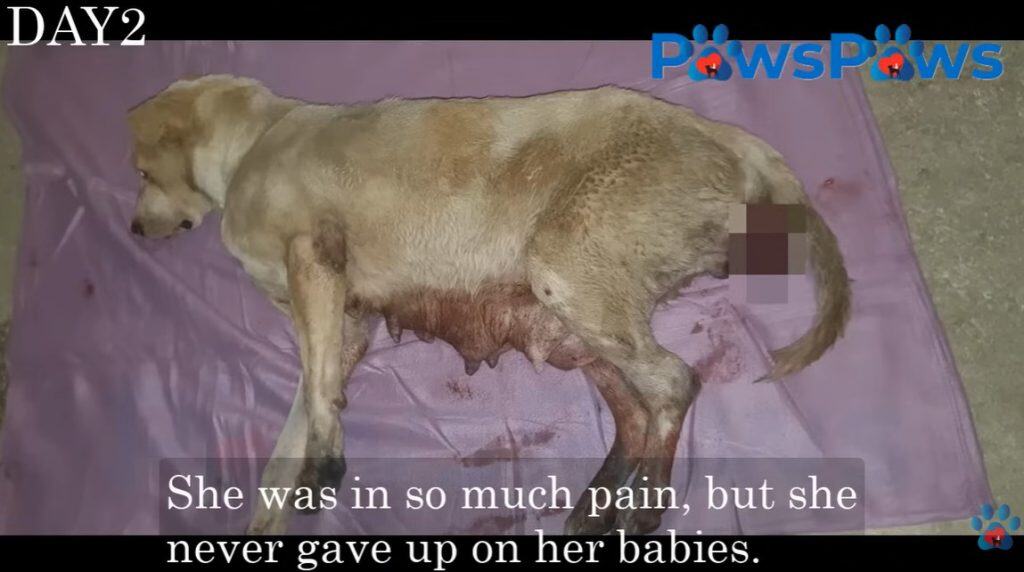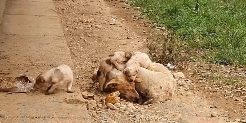 Cura lay curled tightly on the hard ground, her thin body wrapped around her newborn puppies like a living shield.
