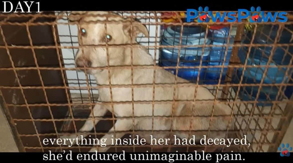 When a rescuer gently lifted the first puppy, Cura cried out softly.