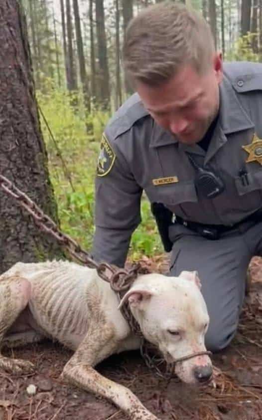 They described a dog so thin he looked like a skeleton, barely moving, barely alive.