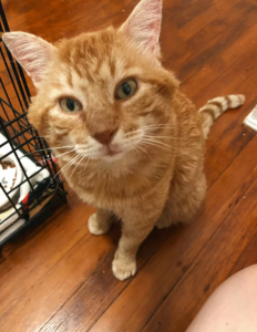 The family left Carlton with Scroggins, who took him to the veterinarian. The physician treated Carlton’s ear and determined that he had FIV, a virus that is common in stray cats, particularly males that may get into territorial and food battles.