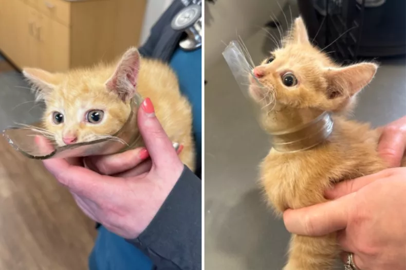 Animal rescuers in Ohio were left stunned after a tiny orange kitten was brought to them with something so shocking around his neck, staff couldn’t believe their eyes.