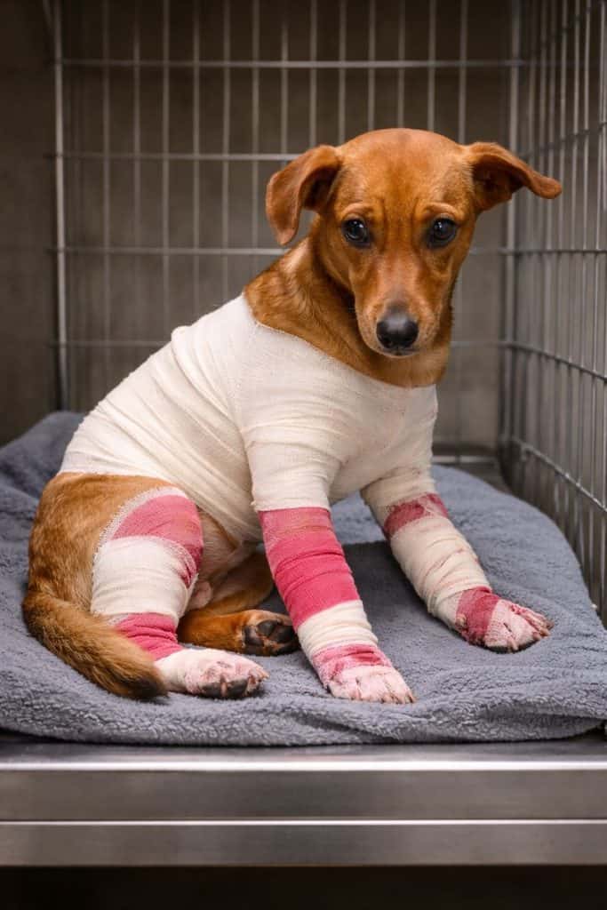 His three injured legs burned where the skin was open.