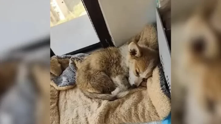 The rescuer took him home and set up a cozy spot on her balcony, allowing him to rest and decompress. Exhausted, the little guy fell into a deep sleep almost immediately.