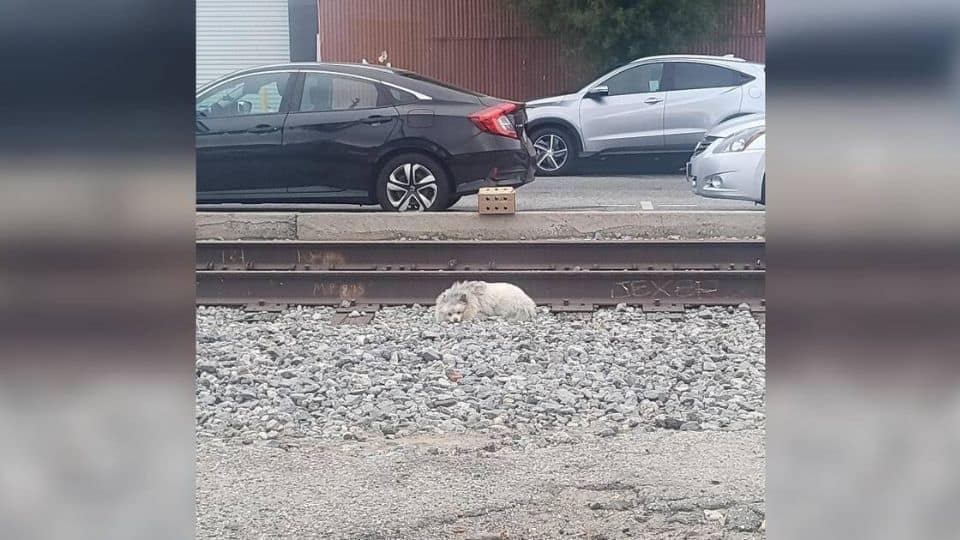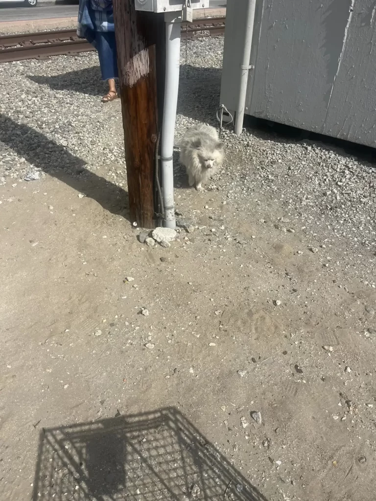 In a quiet, industrial corner of Los Angeles, where the sound of trains echoes through the day, a tiny white dog lay hidden beneath a large metal container.