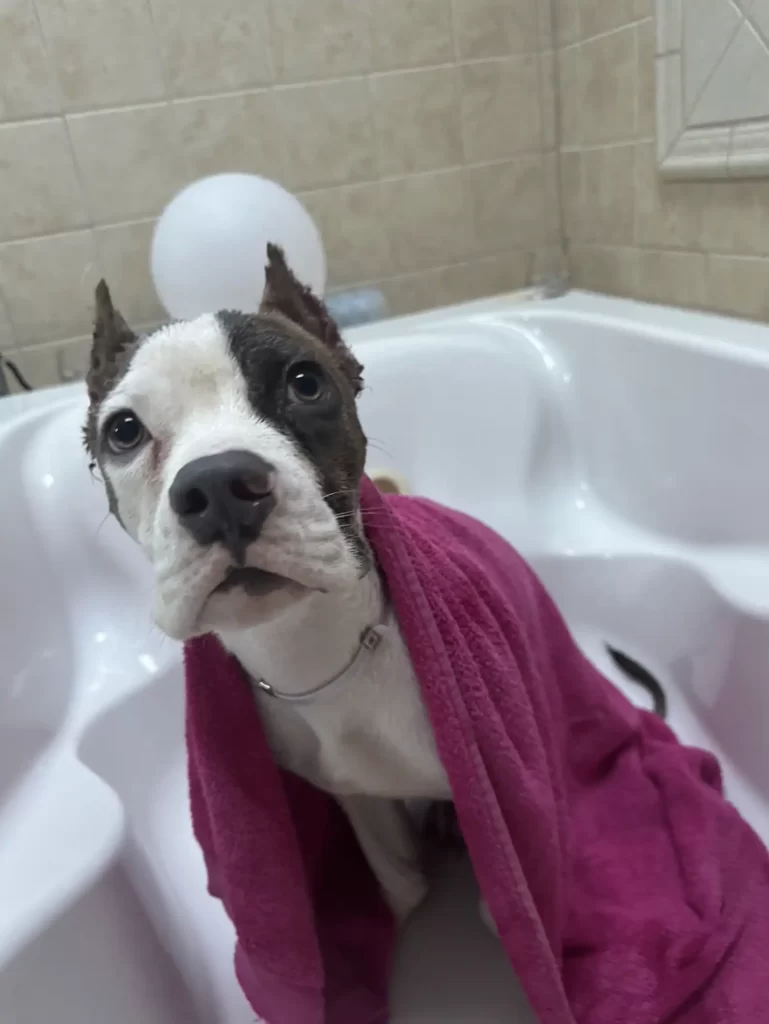 Soon after, Ducky was welcomed by Minnie’s Mutts Dog Rescue and placed in a long-term foster home. There, he’s embraced by a family who showers him with care, letting him enjoy warm baths, cozy naps, and endless affection.