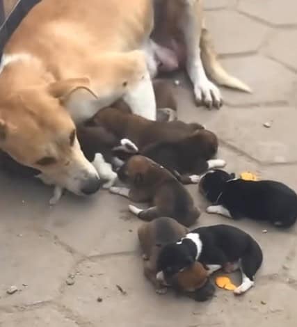 Abandoned Mama Dog Tried To Keep Her Puppies Alive On The Street