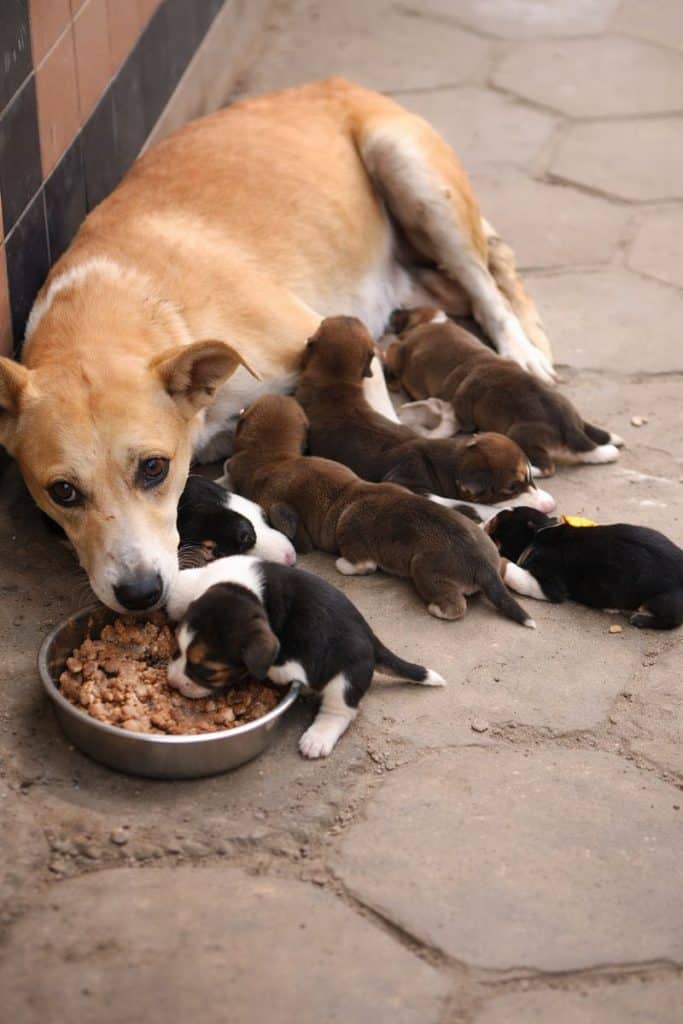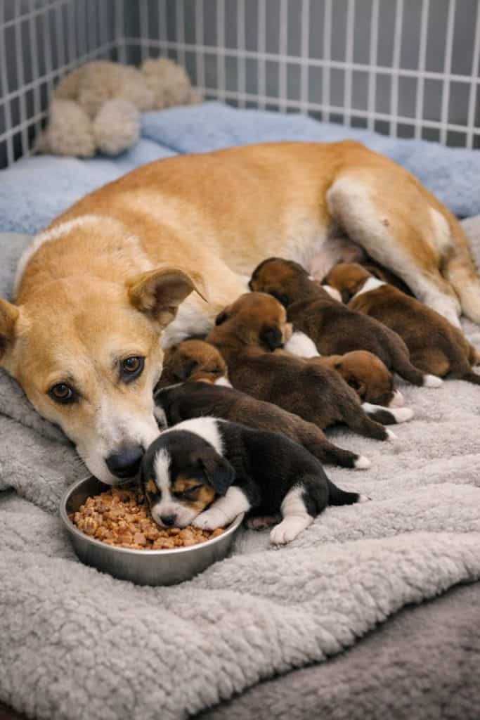 A hungry mama can turn into a safe, happy dog with a full bowl.