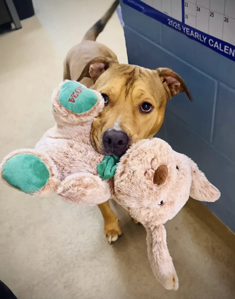 Gradually, the team began introducing him to short play sessions and walks around the shelter yard. One of the behavior specialists discovered that Mason loved toys — especially plush ones.
