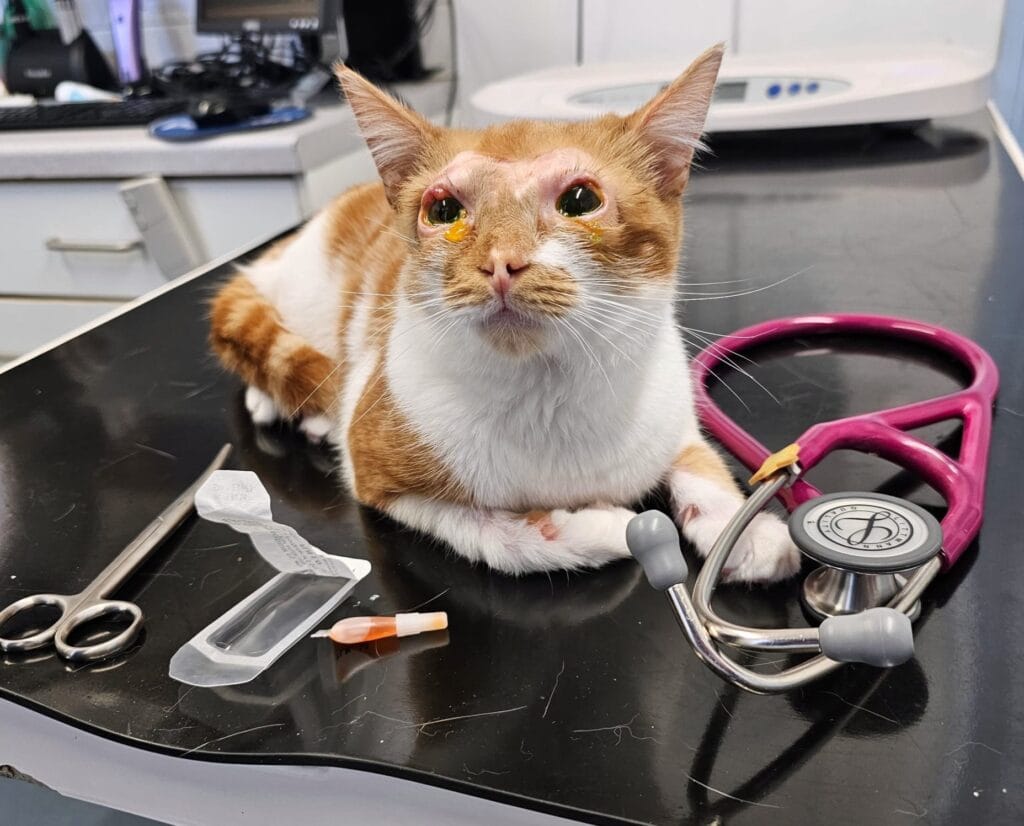 Along with that, they inserted a tube to deliver fluids directly into her arm—a critical measure to rehydrate the dehydrated cat. Every moment felt like a battle against time.