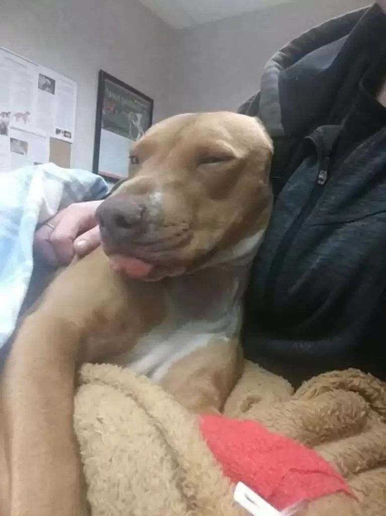 Her small front leg was shaved so they could insert the catheter, and although she didn’t fight them, her stillness frightened everyone.