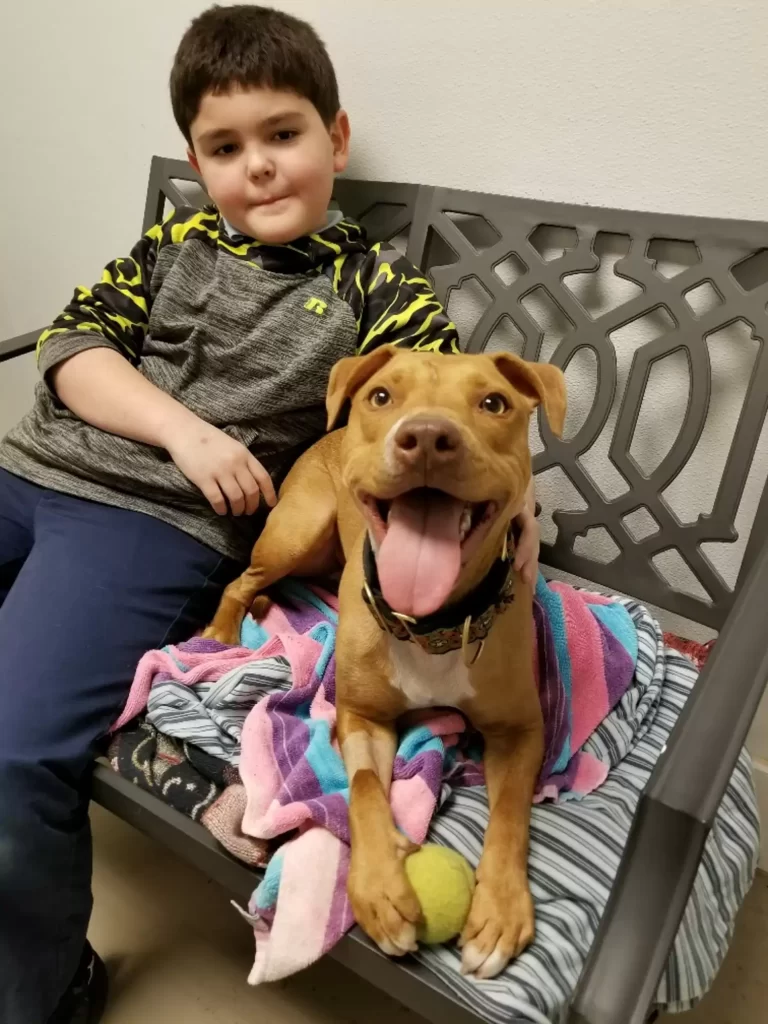 Rosa’s teenage son, Jonathan, sat on the bench nearby, and Suzi did something she hadn’t done for anyone else that day — she walked right over and gently leaned her body against him. Her tail gave a tiny wag. Her mouth relaxed into what looked like the beginning of a smile.
