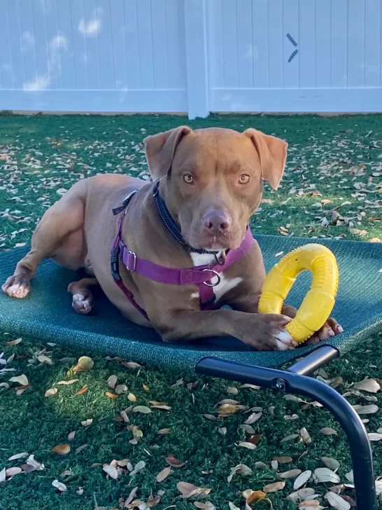 She can live with another dog but prefers a home without young children. Patience is key as she adjusts, but her dream is simple: “Watching movies with her on the couch or bed and falling asleep with her,” Vila said.