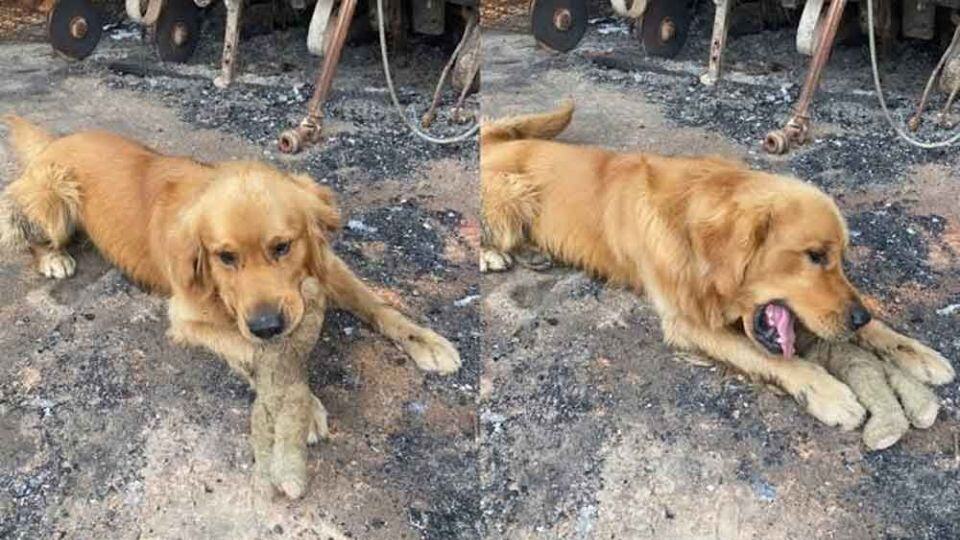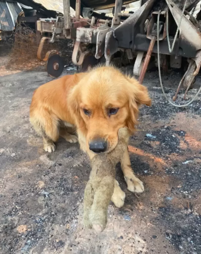This is OJ. After safely evacuating, him and his family returned to their home in Wairewa, Australia yesterday to find it entirely destroyed by the fires. But amongst the rubble, OJ found his favorite toy had survived. 14/10 never letting it go again pic.twitter.com/gx3d0P5349