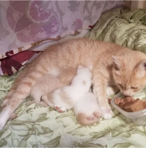 Surprising is the speed with which the nursing mother reacted to the orphaned kittens. She must have heard their meow and, without thinking twice, decided to adopt them.