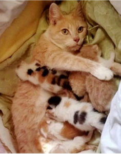 After regaining custody of her offspring, sweet mommy let out a purr, vowing never to abandon them again.