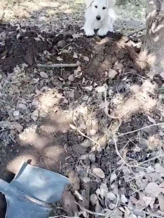 As Cespedes dug the hole to bury Viejito, the puppy stayed close by.