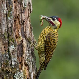 Across open woodlands, savannas, and palm groves of South America, this boldly patterned carpenter climbs trunks and termite mounds with steady intent. It feeds on ants, beetles,…