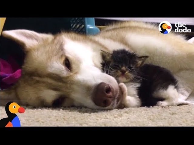 Husky Saves the Life of a Two-Week-Old Kitten Who Now Acts Like a Dog