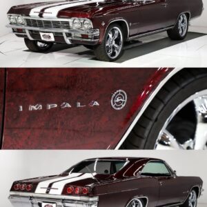 65 Impala looks absolutely mean. The deep burgundy paint with the white racing stripe gives it that perfect muscle car vibe. Sitting on those chrome wheels with…