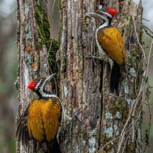 In the sun-dappled forests and groves of South Asia, this fiery climber moves along tree trunks with rhythmic determination. It chisels into bark and decaying wood, searching…