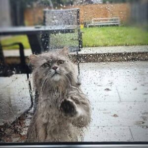 On a cold, rainy afternoon, a scruffy gray cat named Oliver stood outside the glass door, drenched and shivering. His wide, pleading eyes stared inside, one tiny…