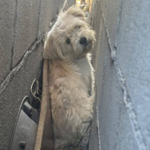 People Were Shocked To Find A Tiny Dirty Pup Hiding In The Tight Space Between Garage Walls