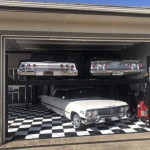 Now this is what I call a proper garage. Three classic Impalas tucked in nice and clean, checkerboard floor shining, chrome everywhere you look. The two up…