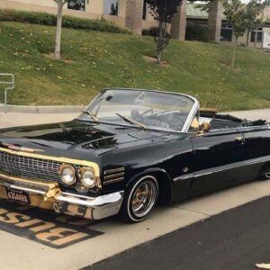 Slammed 63 black on gold and sitting just right. Deep black paint with gold trim shining in the light and those gold spokes tucked under it. Long…