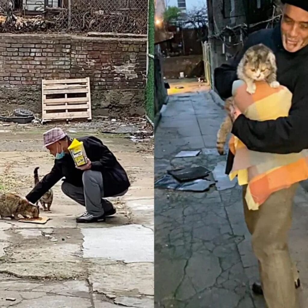 He feeds them, keeps an eye on their health, and works with local rescue groups to make sure they get spayed or neutered when possible.