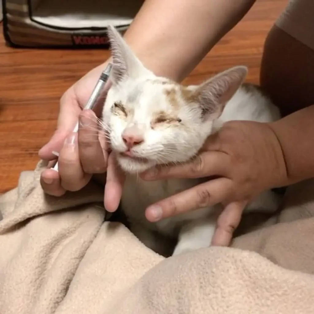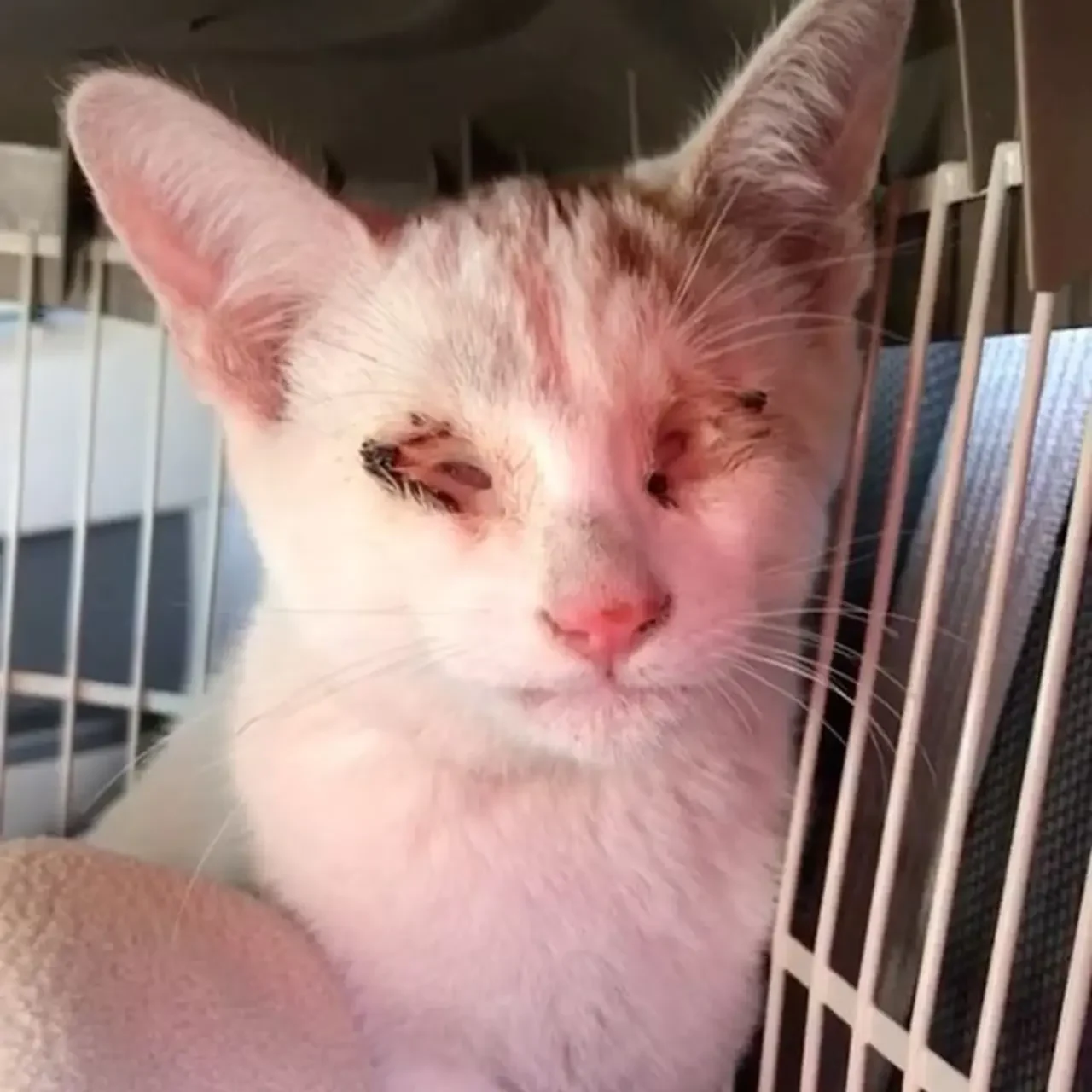 He was filthy, frail, and his eyes were sealed shut from a severe infection.