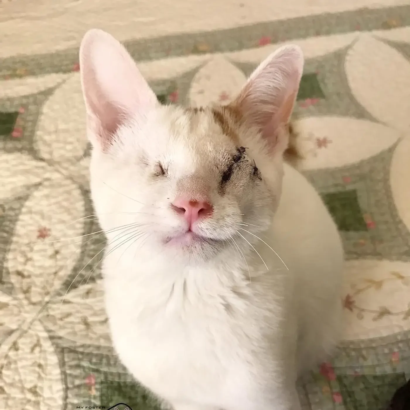 Wally had gone from a sick, blind stray in a tree to a cherished companion with a family ready to celebrate his differences.