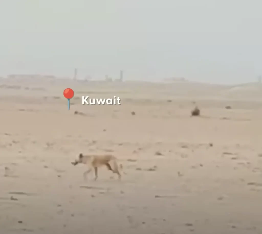One day, an animal rescue group named RAF.KW came across a video of the dog wandering alone in the dry, empty landscape.