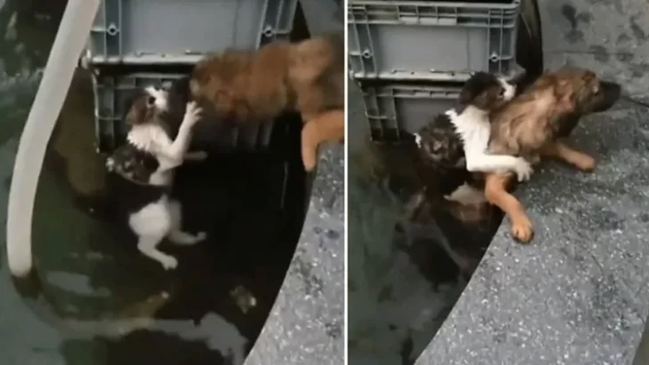 This incredible rescue, caught on camera, quickly went viral, touching the hearts of millions. People couldn’t get enough of the selfless small dog, willing to do whatever it took to save his feline friend.