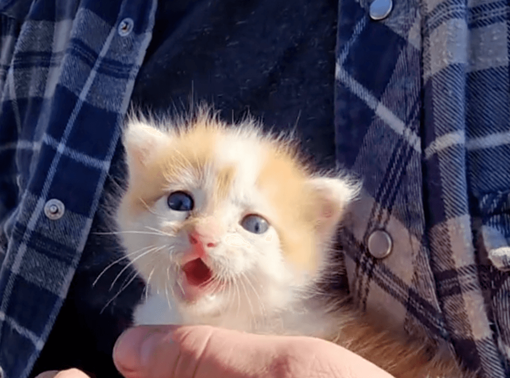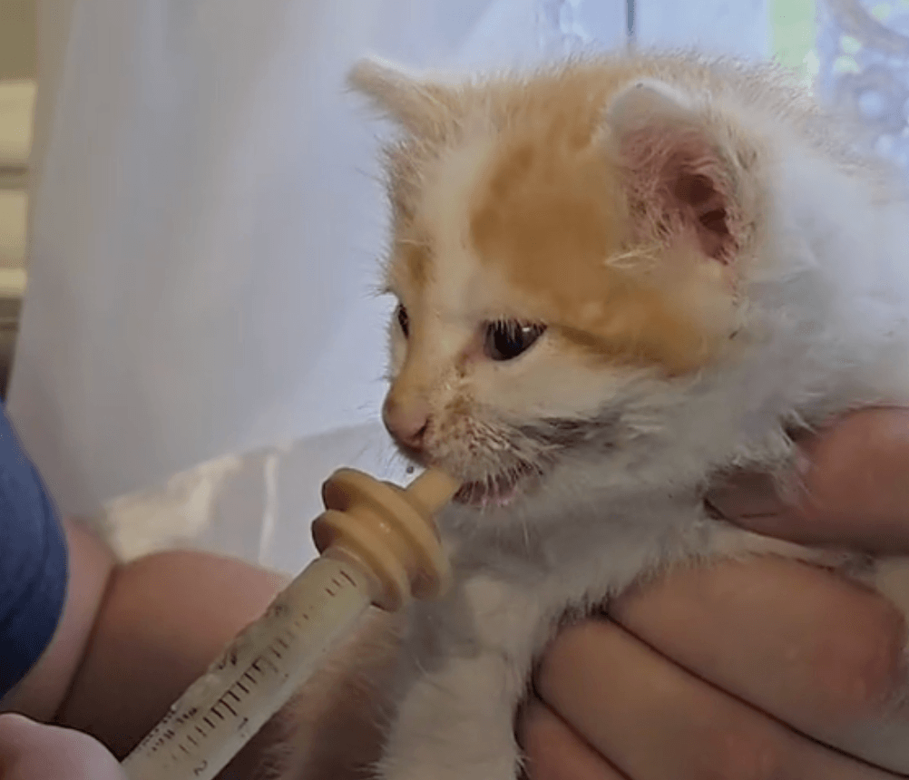 Though the kitten’s eyes were barely open and its movements weak, it was clear that this fragile life was still fighting.