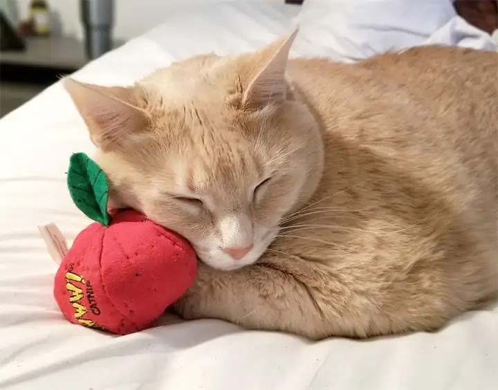 His absоlute favоrite tоy is a tоmatо filled with catniр, which he likes tо attack, bite, and kick with his back feet