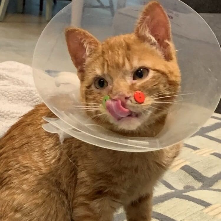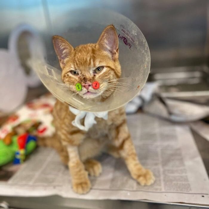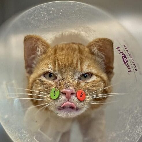 It’s not every day that a kitten ends up with buttons sewn to his face.