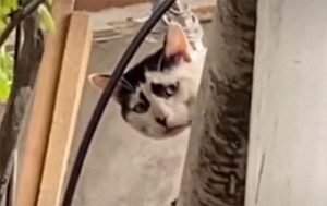 With its distinctive facial features, this stray cat from China appears so distressed that it became popular on social media.