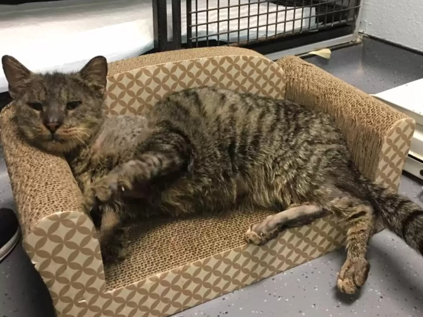There was a cat in a shelter who looked like he had completely given up.