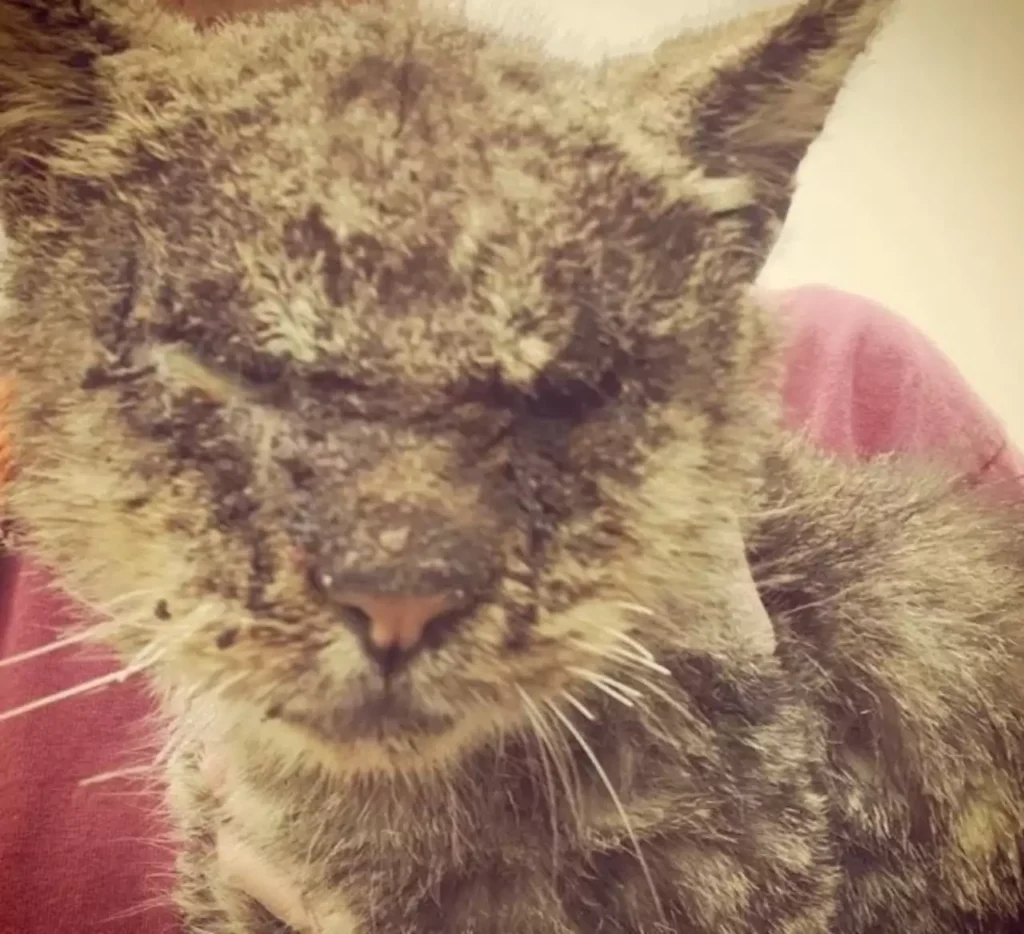 But behind all the scabs and silence was a cat who was still holding on. Somehow.