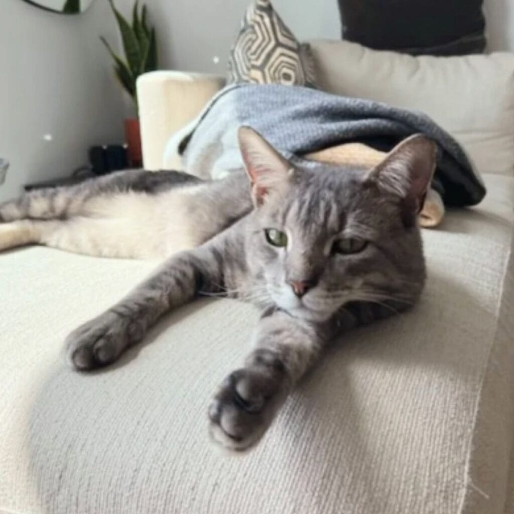 He is the kind of cat who insists on being part of everything, whether it is mealtime, playtime, or simply lounging on the couch.