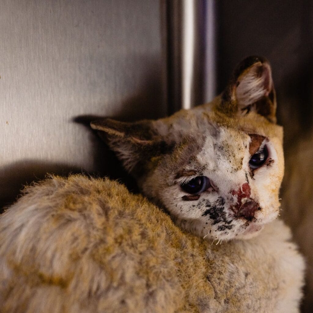 Her fur was singed, her skin badly burned. She had every reason to give up, but she didn’t.