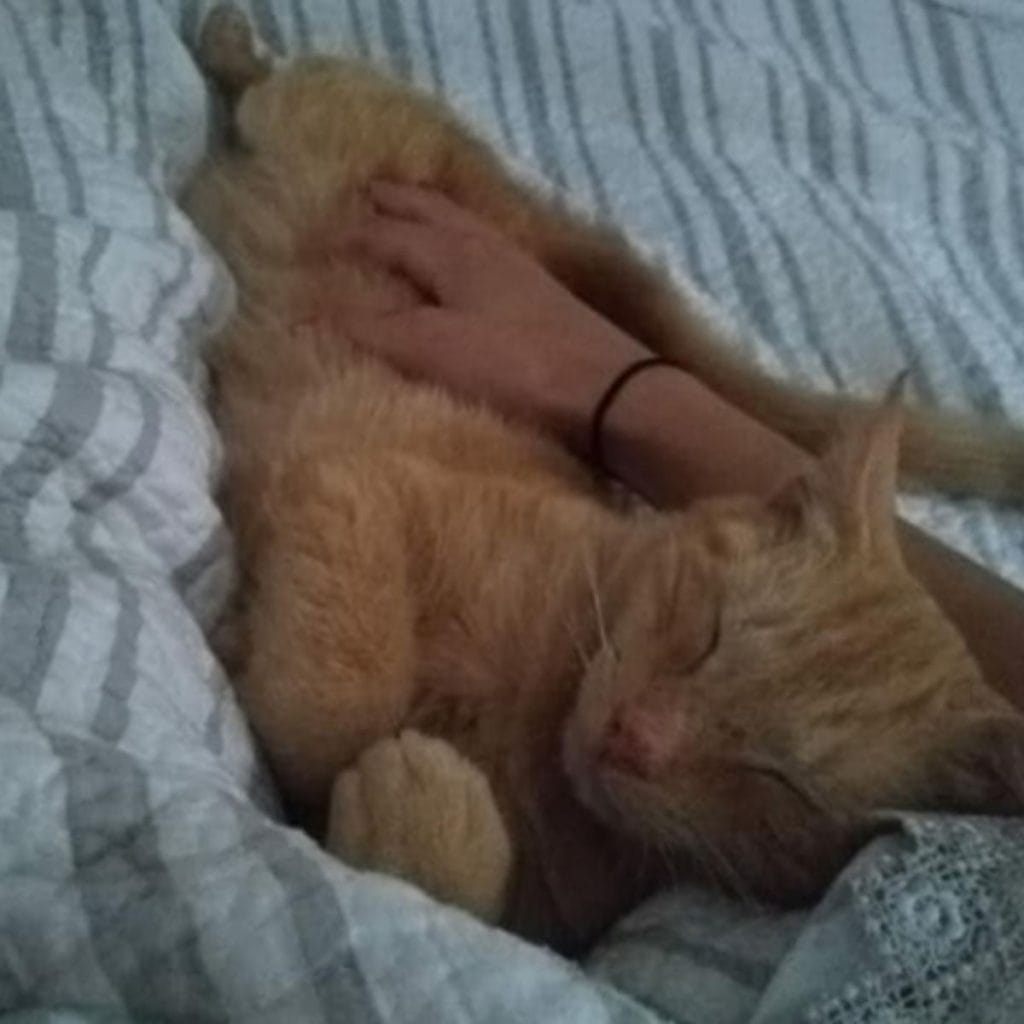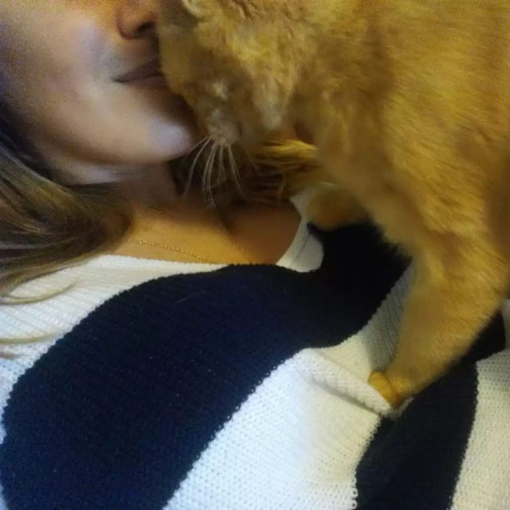 One morning, she woke up with Cat stretched out on her chest, purring away.